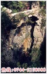 至今,有些老人还指着仙人桥西头观景台那亭亭玉立的少女石,说是金花小姐在观白蟒追击官兵。山下那条泛着鳞光的天子溪水,便是那长剑变成的。现在,天子山上的白蛇,就是那条白蟒的后代。而黑脸将军用利斧劈下的那块横卧两峰之间的巨石,就是现在的“仙人桥”。那齐崭崭的桥面上,似乎还留着刀劈的痕迹哩。